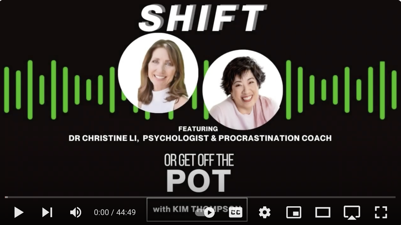 On this episode of Shift or Get Off the Pot I chat with clinical psychologist and procrastination coach Dr. Christine Li about the multifaceted world of procrastination, a challenge many of us face but rarely admit. I’ve certainly procrastinated on many projects over the years, even those that were important to me, why? It’s an interesting behavior and one I was excited to discuss with an expert on the subject!